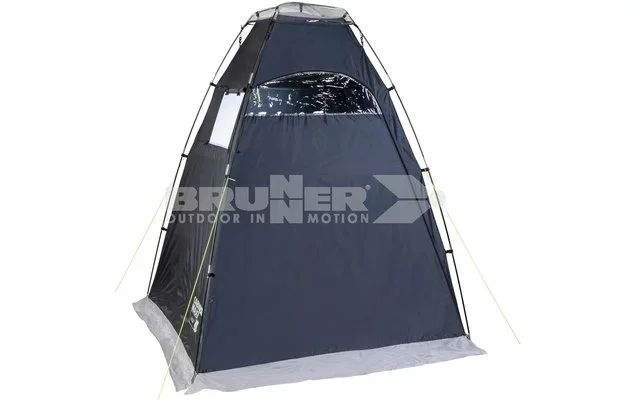 Praktisches Kabinenzelt für Camping und Strand. Perfekt geeignet, um sich zu duschen und umzuziehen, aber dank seines Belüftungssystems auch als einfaches Kochzelt bestens verwendbar. Die steilen Wände sorgen für einen geräumigen Innenraum.