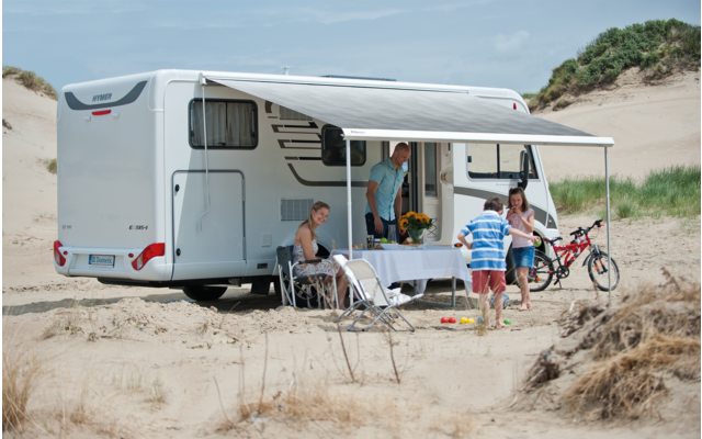 Diese robuste Wandmarkise eignet sich hervorragend für große Fahrzeuge. Das patentierte automatische Ausfallprofil ermöglicht leichtgängiges Ein- und Ausfahren. Endkappen aus Aluminium für hohe Widerstandsfähigkeit.