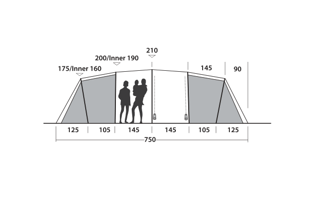 - Gesamtgewicht des Zeltes: Materialien für das Überzelt, Innenzelt, Gestänge und Heringe (17,5 kg)