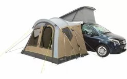 Das freistehende Outwell Busvorzelt Lakecrest ist mit seinem geringen Gewicht und kompakten Format ideal für den aktiven Camper. Der einfache Aufbau gelingt schnell durch zwei leichte Aluminium-Gestängebögen. Wird die Frontwand vollständig eingerollt und der Zeltboden entfernt, kann es auch als großzügiges Vordach verwendet werden. Die Frontwand mit robustem Zwei-Wege-Reißverschluss und Tür ist mit einer Kombination aus Netzstoff und getöntem Fenster ausgestattet, das die beiden einander gegenüberliegenden Netz-Seitenfenster ergänzt und für reichlich Licht und Belüftung sorgt. Alle Fenster lassen sich mit innenliegenden Zip-Up-Vorhängen verschließen. Im Schleusenbereich befinden sich zwei gegenüberliegende Eingänge, die auch bei schlechtem Wetter einen einfachen Zugang zum Fahrzeug und Zelt ermöglichen. Durch die im Lieferumfang enthaltene Bodenplane für den Schleusenbereich und die komplett zu öffnende Rückwand kann der Innenraum vergrößert und ideal genutzt werden. Die Gesamthöhe begträgt 213 cm.