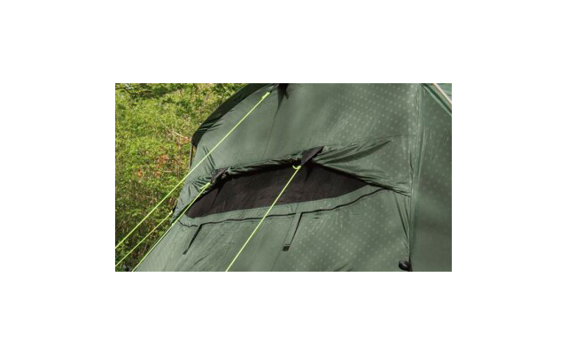 - Große Fenster lassen die Camper das Geschehen außerhalb hautnah erleben oder werden komplett geschlossen, um die Privatsphäre zu wahren Hinterlüftungssystem für eine optimale Durchlüftung – sowohl bei offenem als auch geschlossenem Zelt