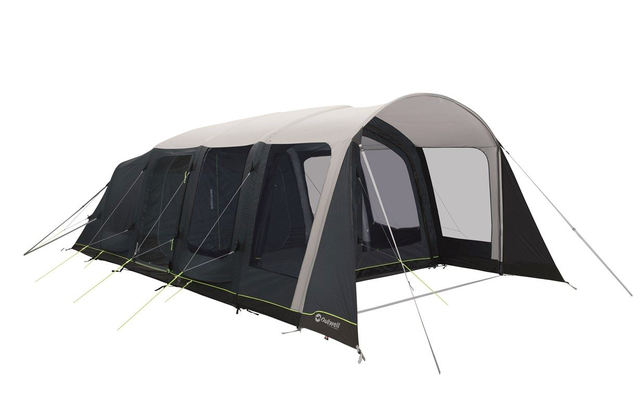 Das leicht aufzubauende Luftzelt Outwell Springville 5SA im zwanglosen skandinavischen Design besticht durch seine schlanke Form, seine klaren Linien und sein innovatives Outtex 6000 Endurance RS-Gewebe mit überragender Reißfestigkeit und Widerstandsfähigkeit. Mit seiner hervorragenden Belüftung eignet er sich hervorragend für lange, aktive Urlaube zu jeder Zeit, und das tiefe Vordach bietet Schatten und Schutz vor den Elementen. Mit viel Stehhöhe genießen Sie das geräumige Gefühl eines voll ausgestatteten Zeltes, das Ihnen Komfort wie zu Hause präsentiert. Es bietet Platz für fünf Personen und ist ideal für Familien und Freunde, die sich ein großartiges Design teilen, um sich mit der Natur zu verbinden und gemeinsam stilvoll zu entspannen. Wenn Sie die Vordertür für ein Panorama-Erlebnis aufrollen, können Sie sich die freie Natur nach drinnen holen.