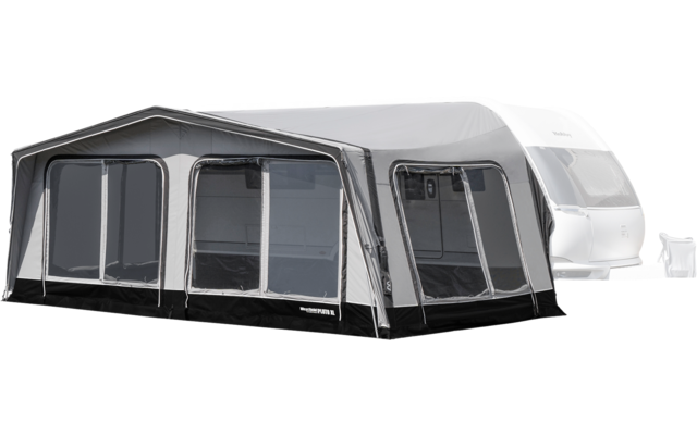 Das Luftvorzelt PLUTO XL mit einer Vorzelttiefe von 300cm bietet ein überragendes Raumgefühl. Durch den Volleinzug in der Kederschiene Ihres Caravans lassen sich alle Fenster, Türen, Serviceklappen und die Tür problemlos öffnen und Sie erreichen eine perfekte Abdichtung an den Seiten Ihres Caravans gegen Wind und Wetter. Die abnehmbaren Vorder- und Seitenwände sind mit Moskitonetzen ausgestattet und können nach Bedarf eingesetzt werden. Durch die großen Panoramafenster haben Sie immer einen perfekten Ausblick und optimale Lichtverhältnisse in Ihrem Luftvorzelt. Ein grenzenloses Panorama-Gefühl erwartet Sie. Dank der AAS-Lufttechnik ist das Luftvorzelt PLUTO XL superschnell und einfach aufgebaut.